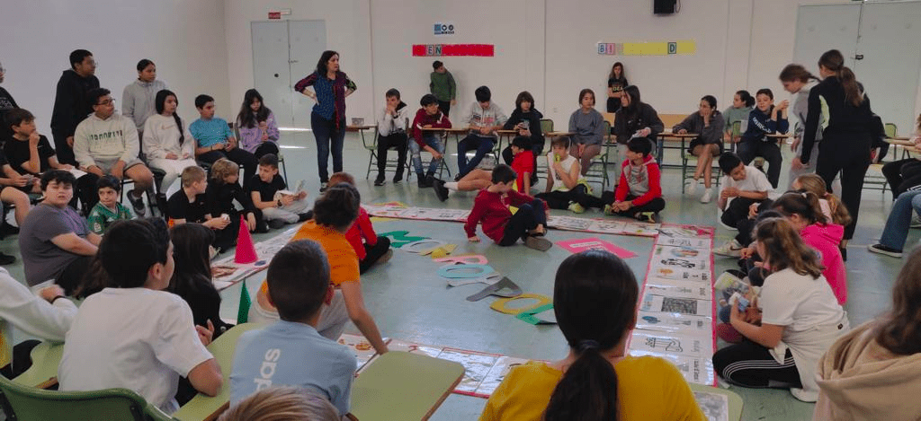 El juego ha sido un divertido motivo de encuentro entre los compañeros de 1º de ESO que los recepcionaban y los de 6º de Primaria que venían a conocer su futuro Instituto.