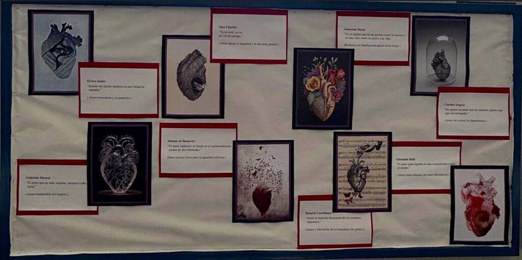 Para ello, el centro cuenta con unos paneles informativos en los que los alumnos podrán encontrar algunos apellidos que podemos utilizar con el concepto de amor, tales como “propio”, “diverso”, “sano” o “libre”. Asimismo, el alumnado puede contemplar una composición en la que poesía y arte se unen mediante imágenes de corazones muy diversos, junto a poemas que expresan distintas concepciones de lo que significa esta palabra.