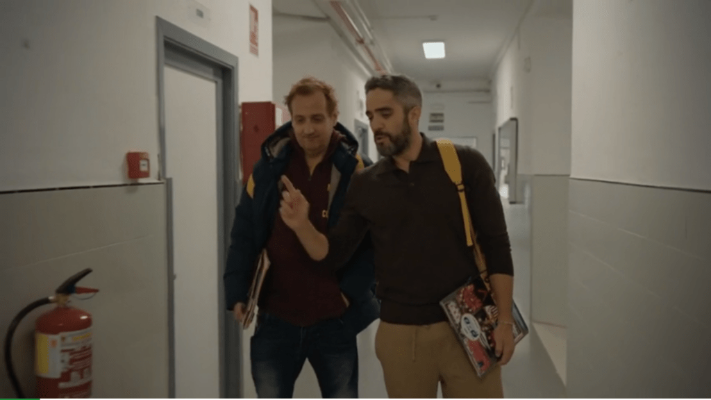 A través de los pasillos, Albert y Roberto acceden al Salón de Actos, donde Albert Espinosa le ha mostrado unos emotivos vídeos de su pasado, con su familia, con su padre… Estas imágenes han emocionado al presentador alcalareño.