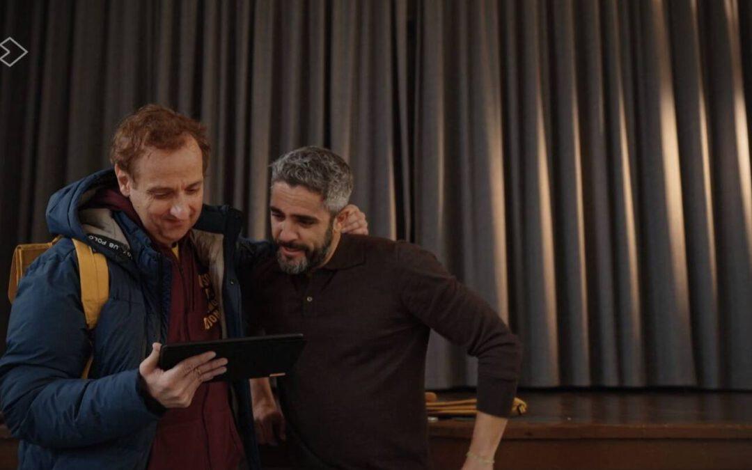 A través de los pasillos, Albert y Roberto acceden al Salón de Actos, donde Albert Espinosa le ha mostrado unos emotivos vídeos de su pasado, con su familia, con su padre… Estas imágenes han emocionado al presentador alcalareño.