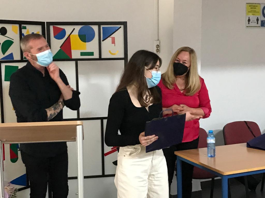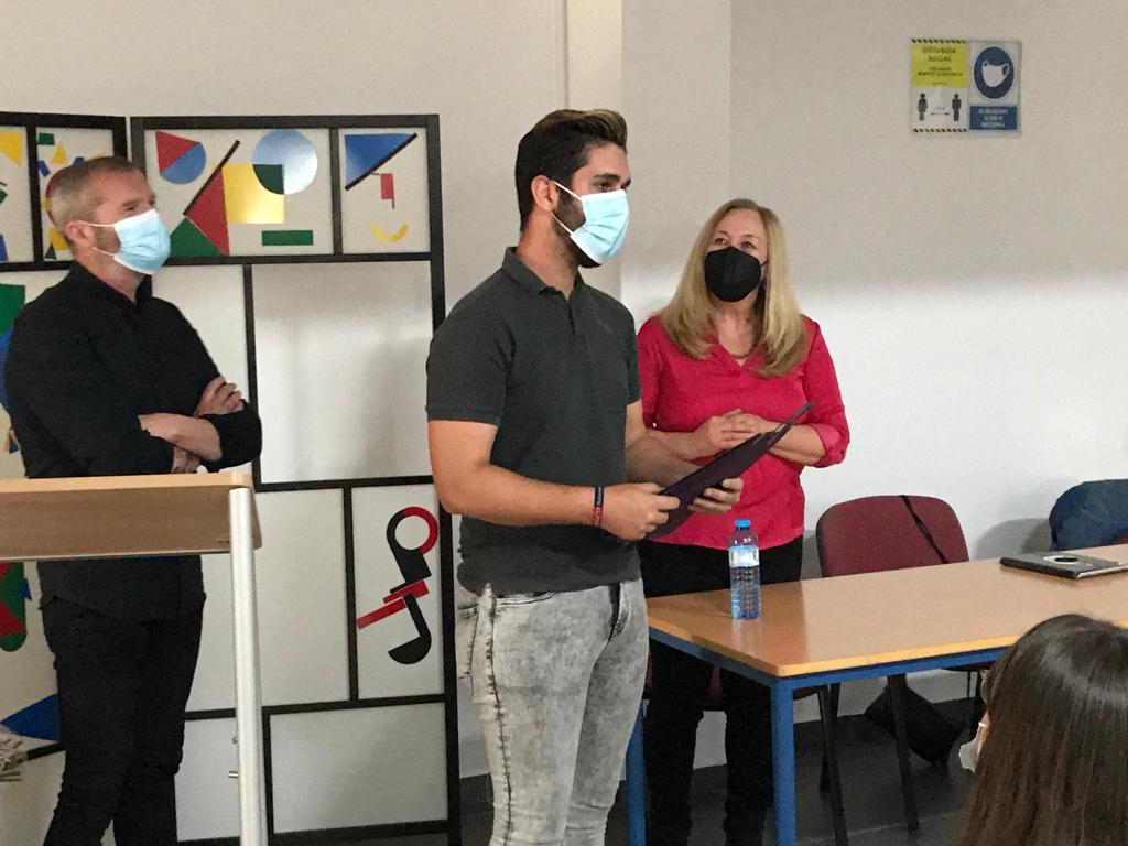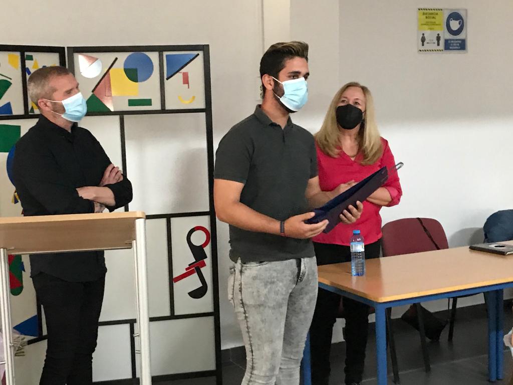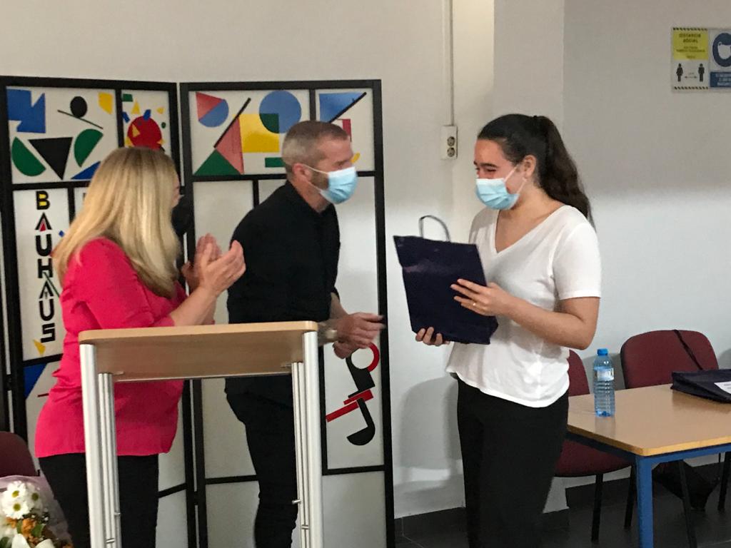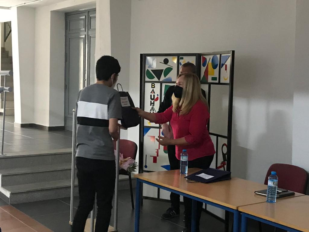 El pasado 8 de abril se entregaron los premios del XXV concurso de narración breve “Antonio Medina de Haro”, convocado por el Departamento de Lengua Castellana y Literatura. Debido a las excepcionales circunstancias en las que nos encontramos no se había podido llevar a cabo la entrega de premios que estaba prevista para el 23 de abril del año pasado. El acto, que tuvo lugar en la antesala del salón de actos, fue un acto íntimo en el que acudieron los premiados con sus respectivos acompañantes y fue presidido por Doña María Quirós, directora del IES, acompañada en esta ocasión de Juan David Medina, uno de los hijos del profesor. A pesar de que las circunstancias no han permitido que la entrega se realice como en otras ediciones no ha dejado de ser un acto emotivo en el que se ha defendido la importancia de la cultura y la literatura que se hace más especial, si cabe, en