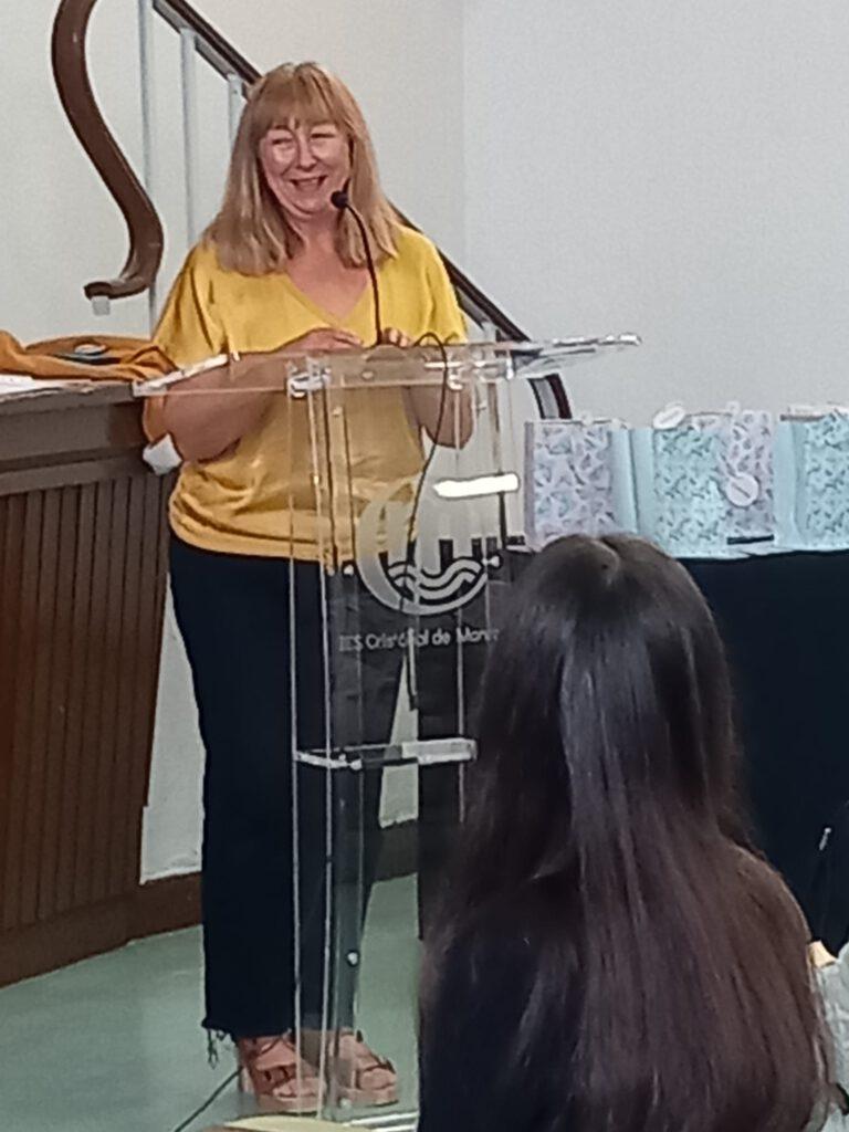 «Yo simplemente quiero agradecer a todas las personas que han hecho posible que este certamen se lleve a cabo y, que así, haya podido cumplir al fin algo que deseaba y que me hacía muchísima ilusión. Siempre me preguntan lo mismo, que por qué escribo. Probablemente todos estemos aquí por motivos parecidos. Queremos enseñar, dar a conocer historias, pensamientos, vidas… cosas que solo se pueden contar escribiendo. Y es que nunca deberíamos dejar de escribir y, por supuesto, de leer.