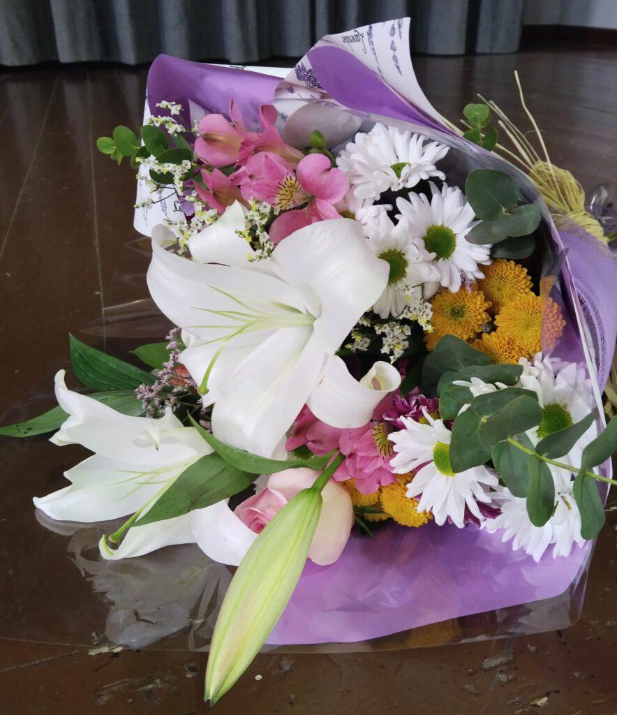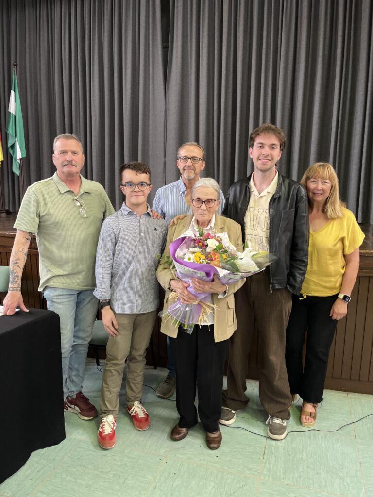 Para finalizar, el alumno de 2º de Bachillerato, Aitor Sillero, ganador incondicional de este Certamen hace entrega de un ramo de flores a doña Micaela, viuda de Don Antonio, en nombre del que fue y siempre será su Instituto.
