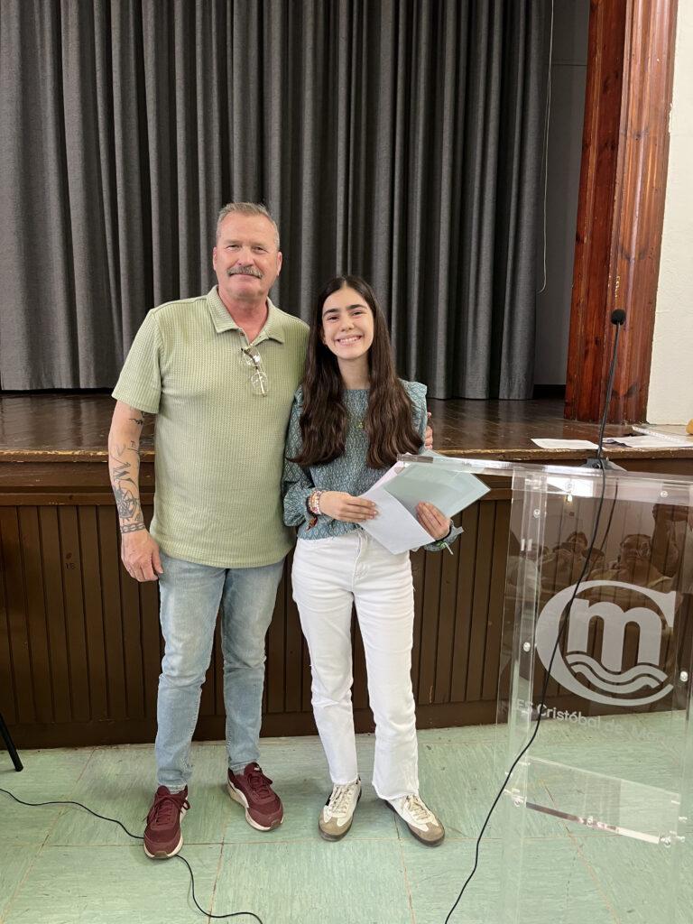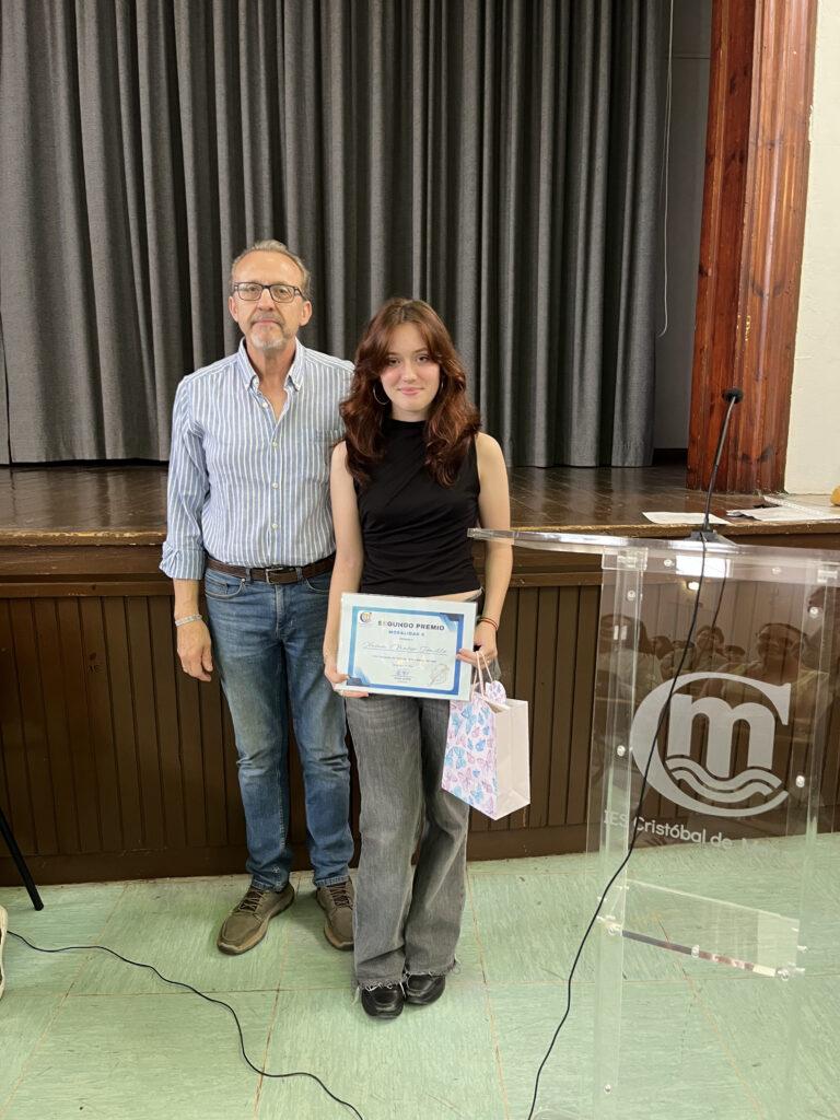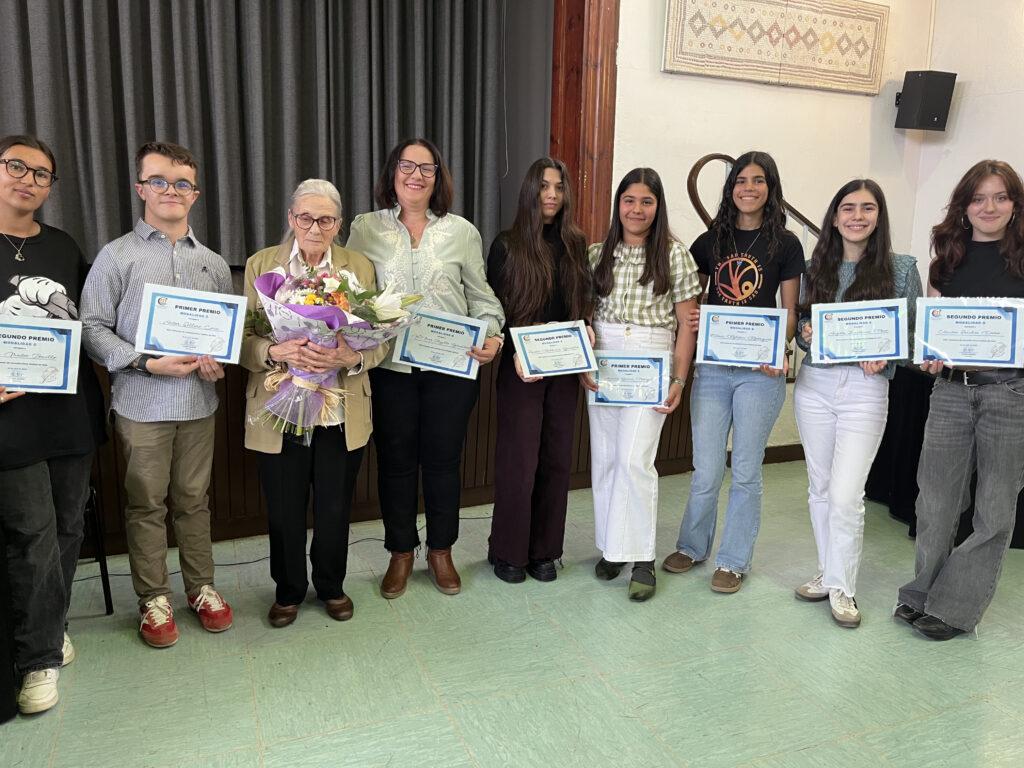 Llega el momento de la entrega de premios, que reciben de manos de dos de los hijos de Don Antonio Medina, Miguel y Juan David y su nieto Miguel, antigua alumno de nuestro Instituto.