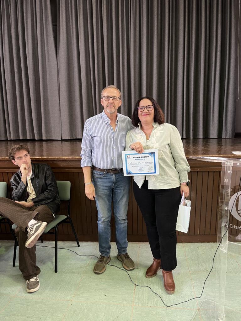 Antes, me gustaría explicaros cuanto reconocemos y mimamos a quienes contribuyen a mantener vivo nuestro certamen: todos los participantes recibirán un certificado acreditativo y una chapa alusiva; a los finalistas se les entregará un diploma, un ejemplar en papel de nuestro periódico digital que recopila las publicaciones más relevantes del curso pasado y un marcapáginas conmemorativo; por su parte, los ganadores son premiados con el vale-cheque, un diploma, un ejemplar de la Antología de relatos que publicamos el curso pasado para conmemorar los 30 años de este certamen, un cuaderno de escritura realizado por la Asociación Planeta Propio de personas con diversidad funcional, marcapáginas y chapa.
