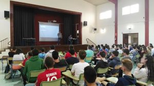Ahora que a sus 27 años puede decir que su empresa ha arrancado, supo transmitir a todos -casi 300 alumnos y alumnas tuvieron oportunidad de escucharlo- la importancia de aprender idiomas y lanzarse a ello sin pereza ni complejos; la importancia del conocimiento y control de las redes sociales y otras competencias digitales como instrumento básico para el desarrollo profesional en cualquier sector. Todo ello sin perder la motivación, creer realmente en uno mismo y en una misma, estar dispuesto a equivocarse y volver a intentarlo, y lo más importante: creer y querer aquello en lo que vayamos a trabajar en el futuro.
