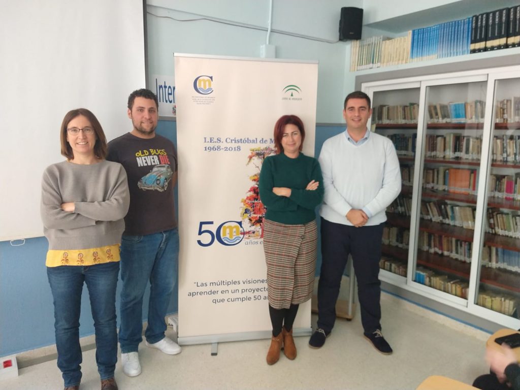 El pasado viernes 15 de febrero con motivo del 50º aniversario de nuestro centro recibimos la visita de la empresa Guadaltel. Nos acompañaron D. Manuel Fernández Fontán y un antiguo alumno del centro que actualmente trabaja en esta compañía D. Cristian García Mesa para darnos una charla acerca de los Servicios Web.