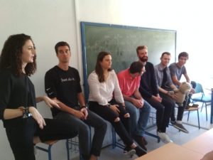 El 13 de marzo dos antiguas alumnas de nuestro centro, Ángela Alcalá y Carmen Martín, estudiantes de «Traducción e Interpretación» en la UPO de Sevilla, trajeron a nuestro instituto a cinco alumnos que están pasando su periodo de la beca Erasmus+ en Sevilla. Participaron en una actividad con el alumnado de las clases de Latín y Griego de 1° y 2° de Bachillerato, en la que expusieron sus experiencias como alumnos Erasmus en nuestro país y animaron a nuestro alumnado a solicitar dicha beca, cuando ingresen en la universidad.
