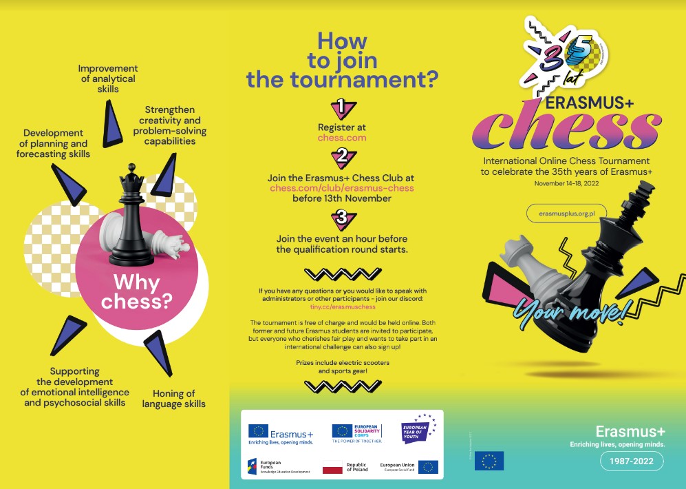 Para celebrar los 35 años de Erasmus+ se ha organizado un torneo virtual de ajedrez en el que participará alumnado de centros educativos de toda Europa.