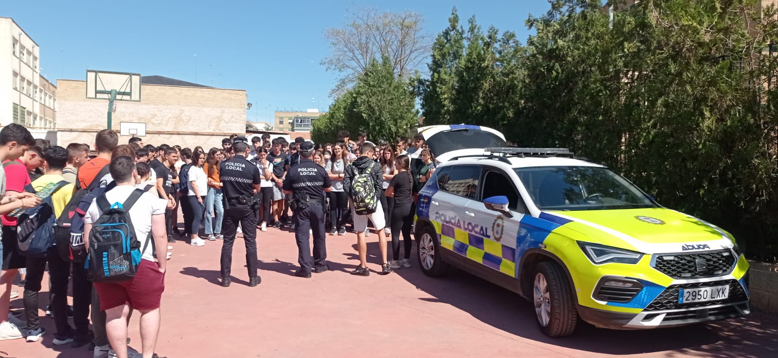 El miércoles día 12 de abril se han desarrollado en el salón de actos del instituto las I Jornadas de Orientación Profesional con la participación de Policía Nacional, Guardia Civil, Policía Local y Bomberos para los alumnos y las alumnas de 4º de ESO y de 2º de Bachillerato. Dispuestos en stands, el alumnado ha podido recibir la información sobre las funciones y requisitos de acceso a cada cuerpo de seguridad, asimismo han podido ver “in situ” la dotación de un patrullero de la Policía Local.