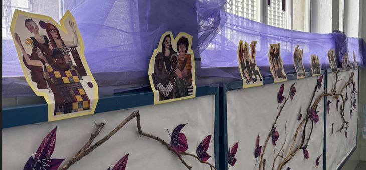 Por ello, desde la Comisión de Coeducación, este 2026 el concepto elegido ha sido la composición de una genealogía femenina. En otras palabras, la creación de un “árbol de las referentes” que visibilice, a lo largo de la historia, a algunas de las mujeres que han contribuido a la consecución de los derechos femeninos actuales. Ese es el motivo que preside el panel central del instituto: un árbol de cuyas ramas destacan hojas con nombres de decenas de activistas femeninas a lo largo de la historia.