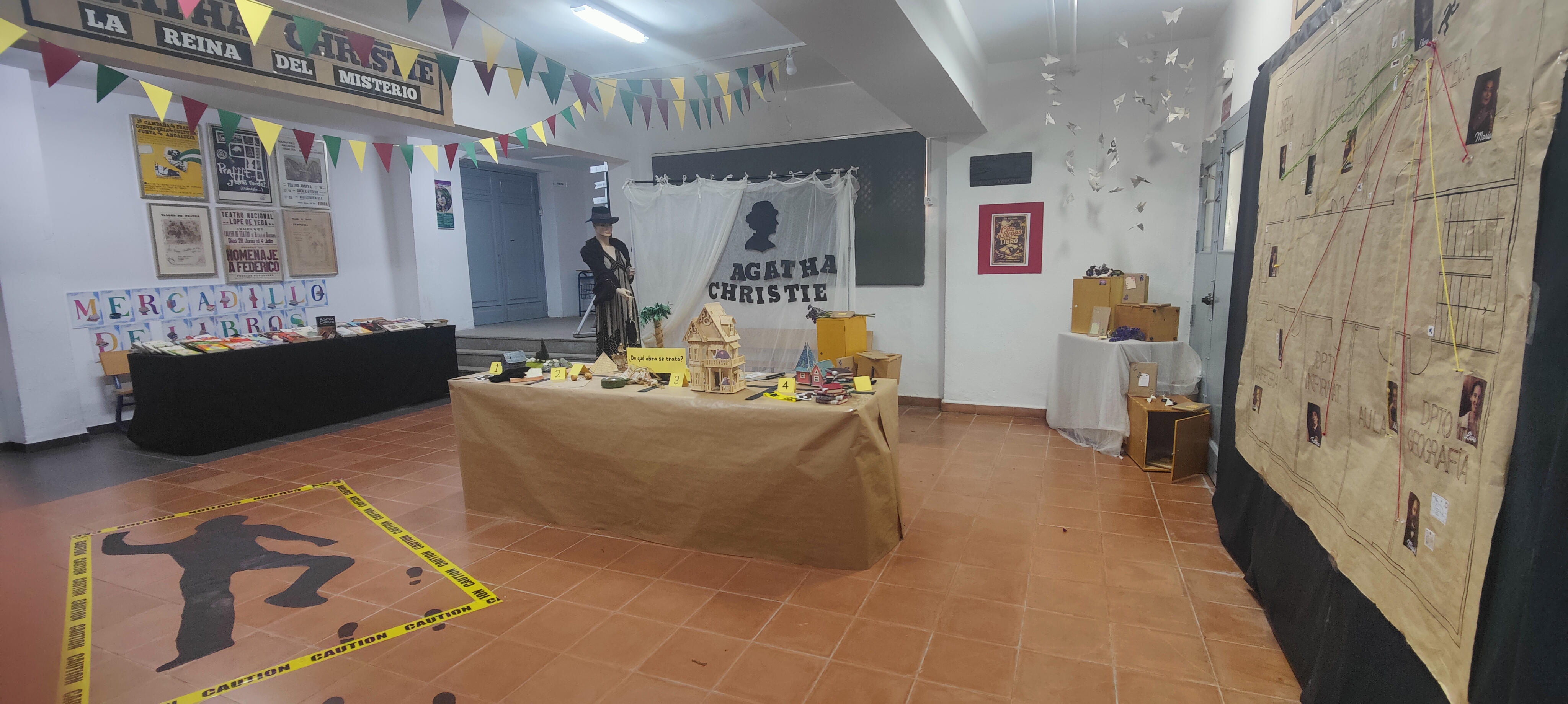 Para saber un poco más sobre la reina del misterio, te invitamos a visitar nuestra exposición en la antesala del salón de actos. Allí podrás poner a prueba tu inteligencia tratando de descubrir al culpable de un terrible asesinato o intentar descifrar las claves para adivinar
